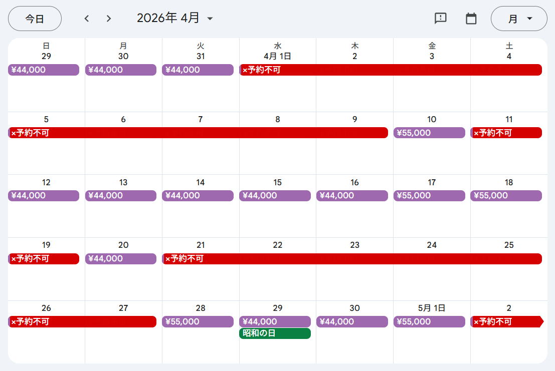 2026年2月24日 / 最終更新日 : 2026年2月24日 euro 安曇野情報 空室状況 2026年4月【2月24日更新】 2026年2月24日現在の空室状況です。空室状況は変わりますので、カレンダーに記載の通りの空室とは限りませんので予めご了承下さい。 ご予約はこちら FacebookXBlueskyCopy