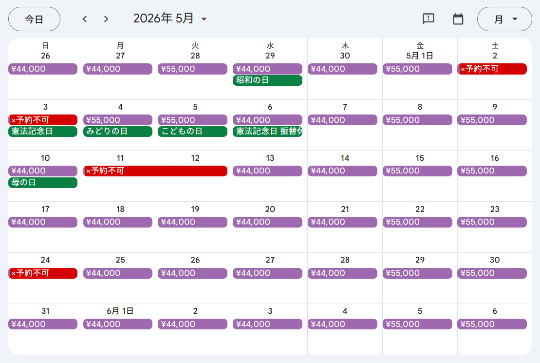 2026年2月4日 / 最終更新日 : 2026年2月4日 euro 安曇野情報 空室状況 2026年5月【2月4日更新】 2026年2月4日現在の空室状況です。空室状況は変わりますので、カレンダーに記載の通りの空室とは限りませんので予めご了承下さい。 ご予約はこちら FacebookXBlueskyCopy