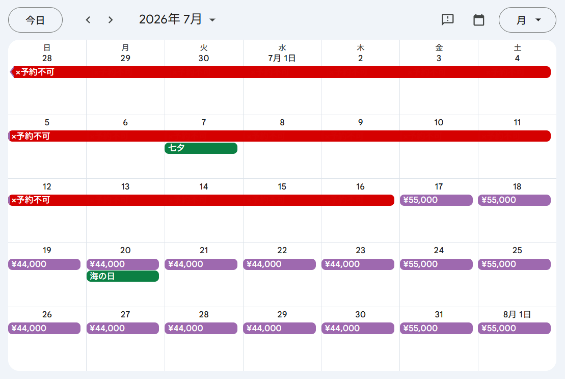 2026年4月1日 / 最終更新日 : 2026年4月1日 euro 安曇野情報 空室状況 2026年7月【4月1日更新】 2026年4月1日現在の空室状況です。空室状況は変わりますので、カレンダーに記載の通りの空室とは限りませんので予めご了承下さい。 ご予約はこちら FacebookXBlueskyCopy